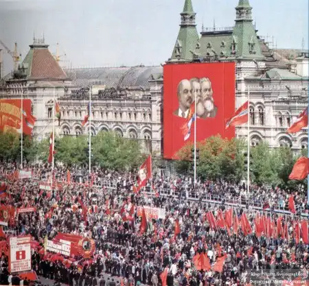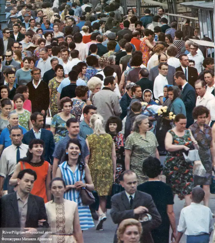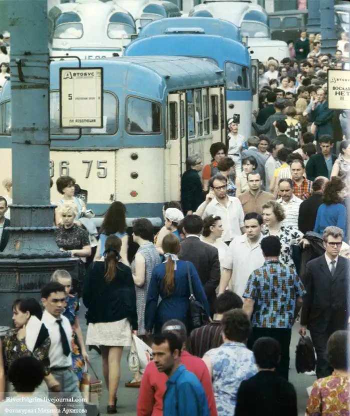 Рабочий день закончен. Трудящиеся 2-го часового завода после смены.