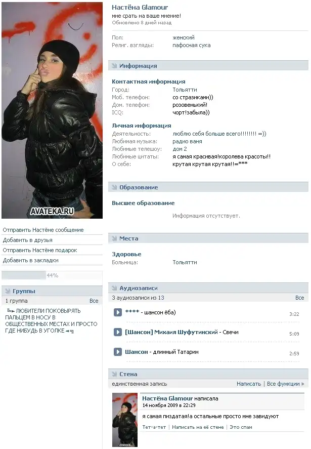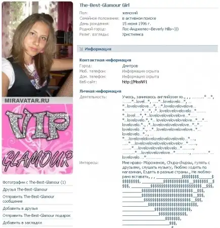 - «нереальное количество картинок, нарисованных символами, в строке «Цитаты» и «О себе» (в нашем случае картинки не только в строчках «цитаты» и «о себе»,