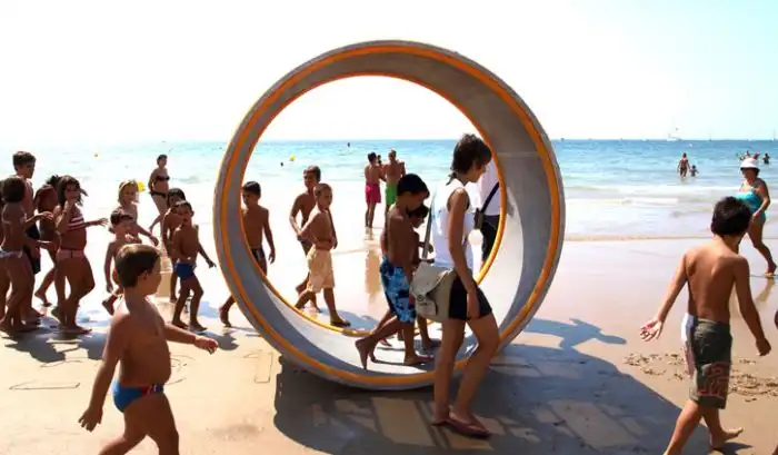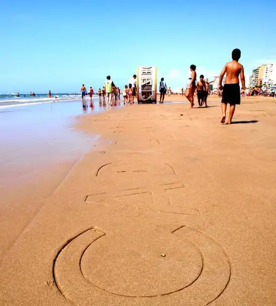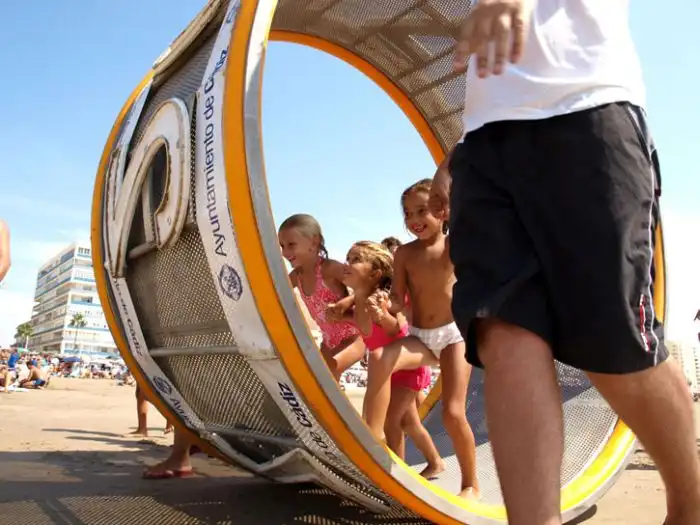 Он печатает прямо на песке, толку, правда от этого мало, зато он приносит много радости детишкам.