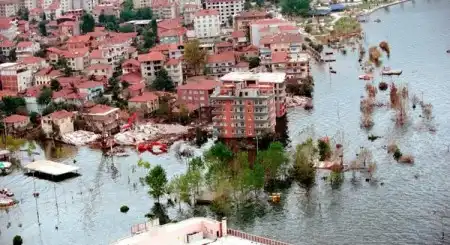 10) 24 августа 1999 года в Измите, Турция, цунами, вызванное землетрясением, накрыло прибрежный город. (jr/Seth Rossman/US Navy/UPI)