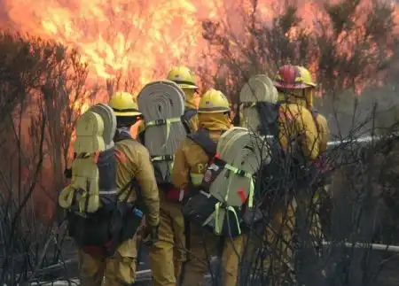 26) Пожарные сражаются с быстро распространяющимся лесным пожаром в 64 км к востоку от Сан-Диего, Калифорния, 25 июля 2006 года. (UPI Photo / Earl S. Cryer)