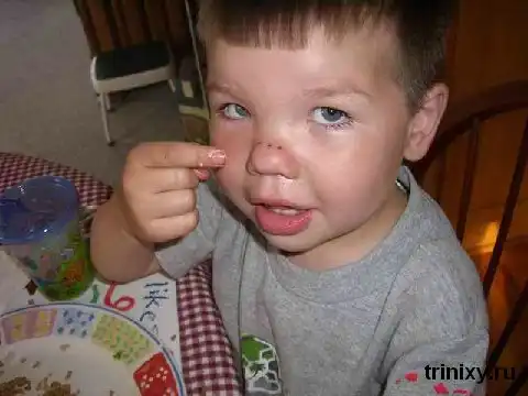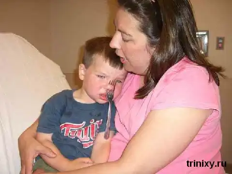 Держа в вилку в руке, он потерял равновесие и упал со стула. Его сразу отвезли в больницу, где вилку достали.