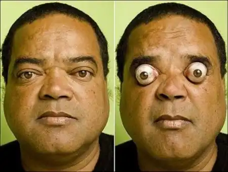 10. Клаудио Пинто (Claudio Pinto) из города Бело Оризонти известен больше, как человек с вытаращенными глазами, потому что он способен вытаращить глаза на 4см, то есть, на 95% глазных орбит.