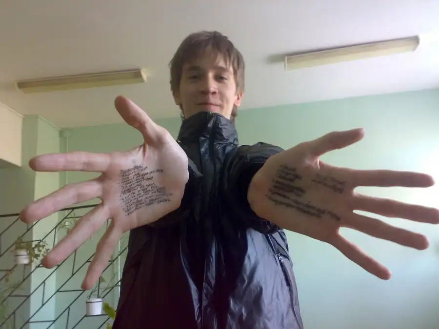 ответы на листах (принес, незаметно достал из пачки и сдал экзамен),