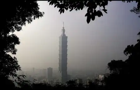 11. 509-метровое здание Taipei 101 в туманную погоду 4 января 2010 года в день открытия Бурдж Дубая, которое «отняло» у Taipei 101 звание самого высокого здания в мире. (Pichi Chuang-Reuters)