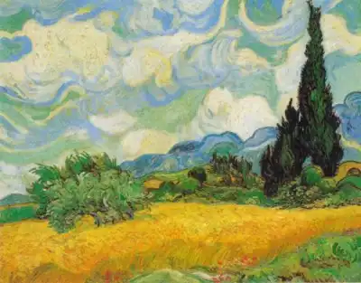 19. Винсент ван Гог — Пшеничное поле с кипарисами (1916)