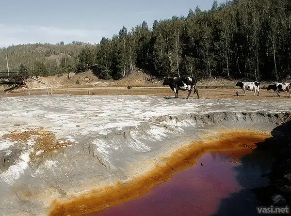 Пара слов о добычи меди. Содержание меди в руде меньше 1%. Чтобы добыть 1 тонну меди нужно переработать 100 тонн породы. После извлечения меди остаются тысячи тонн шлама. Его сваливают недалеко от завода. Образуются так называемые терриконы (отвалы, создаваемые при разработке месторождений)