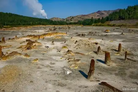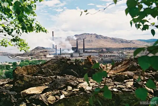 Гораздо большую опасность представляют кислотные дожди. Не вдаваясь в подробности плавки меди, скажу что медь содержится в породе в виде сульфидов. При обжиге получаем сернистый газ SO2. В атмосфере образуется серная кислота H2SO4. Разумеется, образуется не 98% кислота, человек даже не почувствует кислоту в кислотном дожде, но при постоянном выпадении такого дождя вся растительность погибает. Как только погибает растительность, то дождь с ветром очень быстро смывают землю. Горы превращаются в скалы.