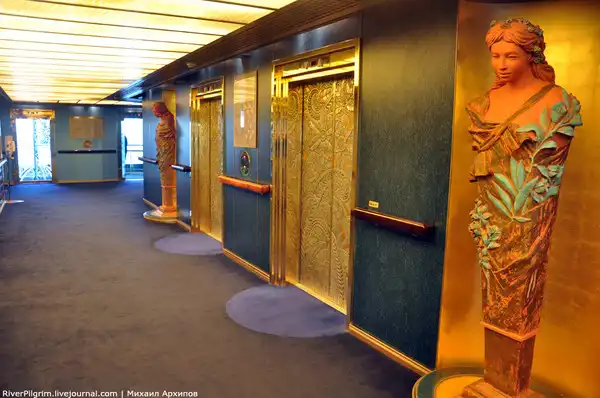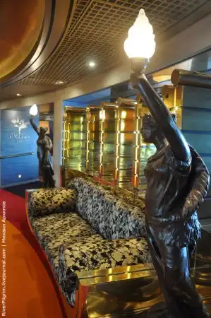 Посредине лайнера расположен трехэтажный Атриум, в центре которого под потолком подвешен хрустальный морской конек.