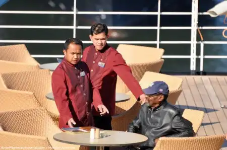 Что объединяет бары различных лайнеров? То что там никто не умеет готовить коктейли. Просто совершенно. Такое ощущение, что ни их готовят из концентратов, добавляя только воду или лед. Причем касательно последнего на "Зайдердаме" все напитки бодяжили так, как ни на одном другом теплоходе не делали. 50 грамм рома и 200 льда.
