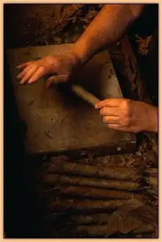 Сигары скручивают из трех частей - наполнителя, связующего листа и покровного листа. Эту работу традиционно выполняют женщины, обычно на деревянной доске или на ногах. Отсюда и пошел миф о том, что женщины скручивают сигары на бедрах.