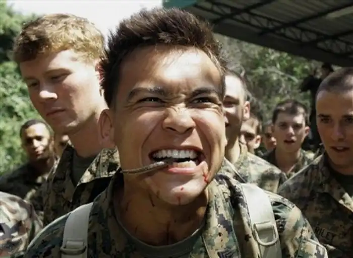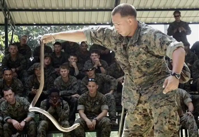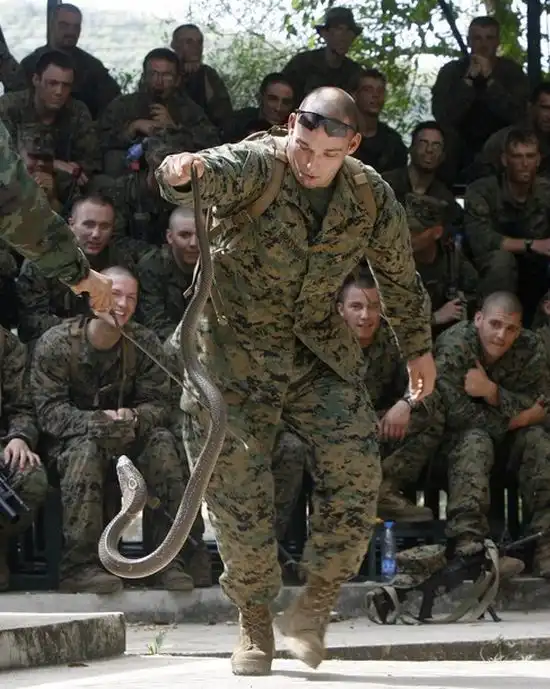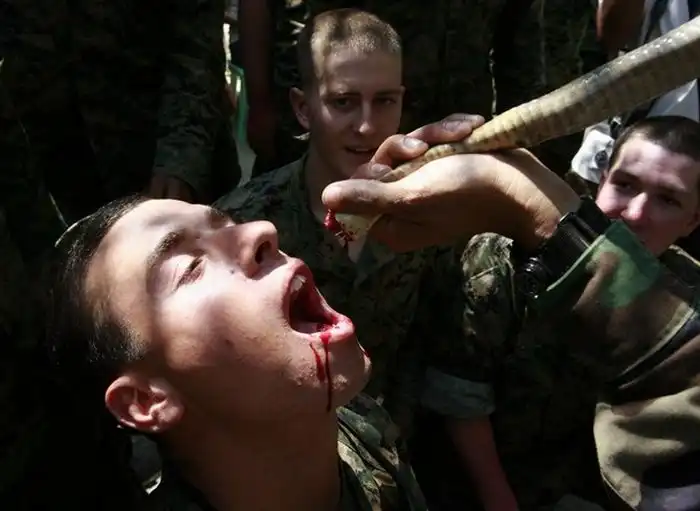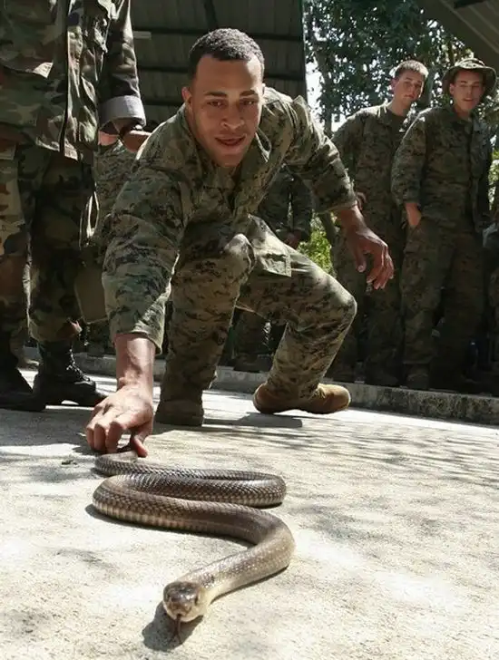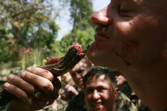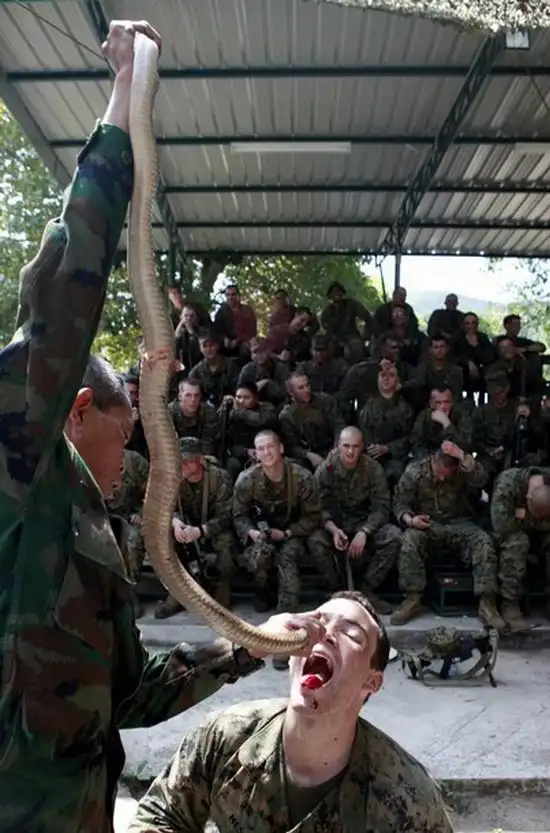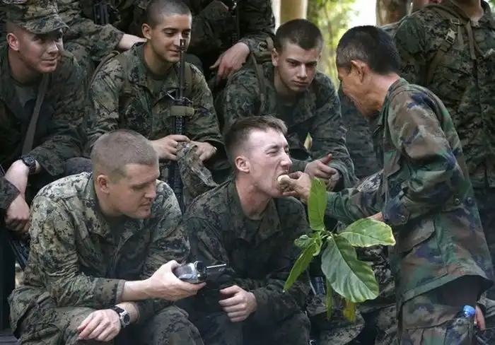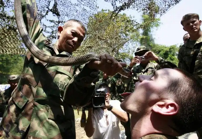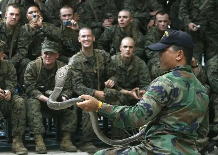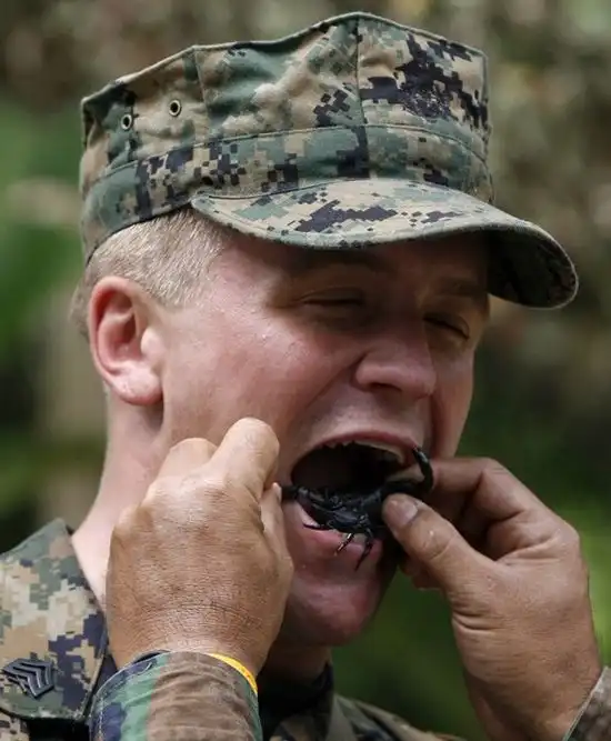 Морпехи США приняли участие в учениях под названием "Cobra Gold 2010". Испытания там были не для слабовольных людей. Чтобы воспитать силу духа, им пришлось есть ящериц, змей, скорпионов и всякие другие не очень вкусные, но питательные продукты питания