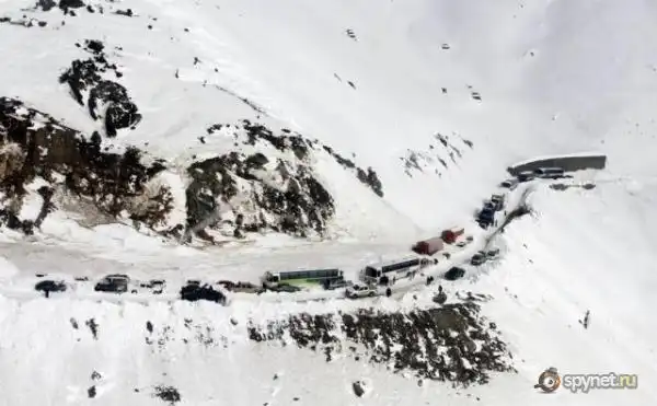 В понедельник и вторник снежные лавины сошли с гор на южном склоне перевала, и погребли под собой сотни машин, микроавтобусов и грузовиков.