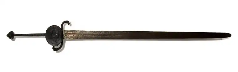 двуручника с одинаковым успехом могли использоваться на всей территории Шотландии. (В другом шотландском источнике такой двуручник с раковинами на гарде и изогнутыми к клинку перекладинами крестовины проходил под названием Two-handed Highland sword).