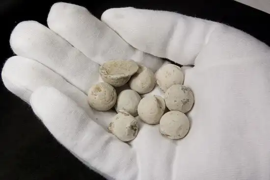 А эти свинцовые горошины (D 16 мм) и есть те самые мушкетные пули, которые дырявили слишком тонкие панцири вместе с содержимым. Эти пули, найденные у подножия Дин Кэстл, относят к XVII веку, ко времени Гражданской войны 1644–1647 гг.: