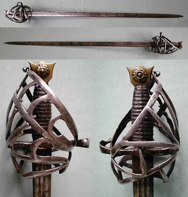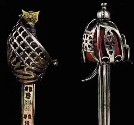Середина XVI века и XVII век — это время, когда гарды шпаг и мечей становились всё более сложными. Они постепенно обрастали дополнительными элементами: дужками, кольцами, контргардами. Сначала защищали только палец, вынесенный по новейшей моде за перекрестье для акцента на колющих ударах. Затем стали прикрывать и кисть. В итоге получилось так, что гарды-корзинки практически не уступали с точки зрения защиты латным или кольчужным перчаткам.