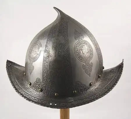 Рассмотрим ещё один венгерский открытый шлем XVII века, аналог шишака, который так и называется "шлем всадника" (тот самый Lobstertail Helmet):