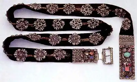 Вот такая почти гламурная вещь, не хватает только стразов))). Ну, а если серьёзно, то пояс в те времена служил не столько для поддержки штанов, сколько для идентификации общественного статуса его носителя.