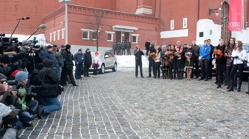 Общение олимпийцев с президентом затянулось на два с лишним часа – все это время полсотни журналистов провели на гостеприимном мартовском ветру под бдительными взорами кремлевской охраны, развлекающейся “тетрисом” камер с места на место (”тут стоять нельзя, ФСО работает”) и съемкой подарочных машин.