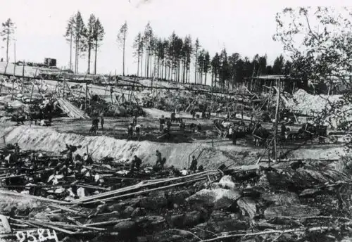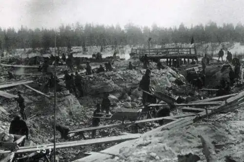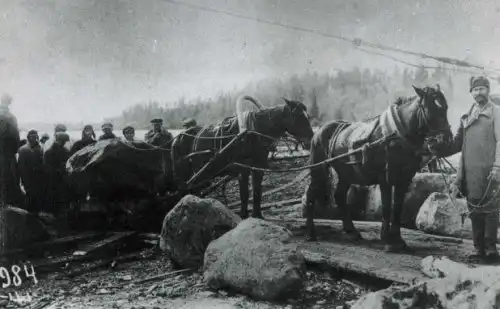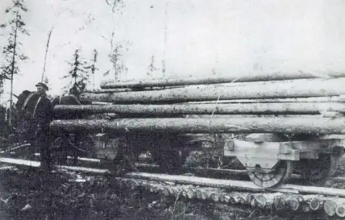 Лес идет в дело. И на сооружения канала и на местные "деревянные" дороги и такие же "поезда"