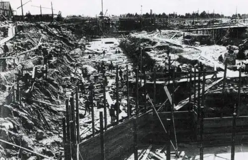 И вот уже видны очертания будущей гордости очередной сталинской пятилетки!