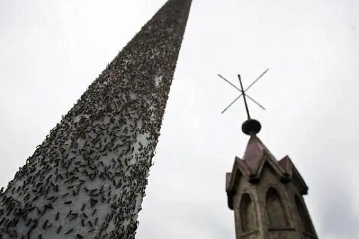 Именно так выглядят населенные пункты, которые подвергаются нашествию полчищ насекомых.