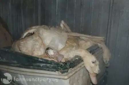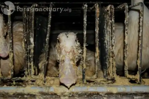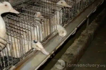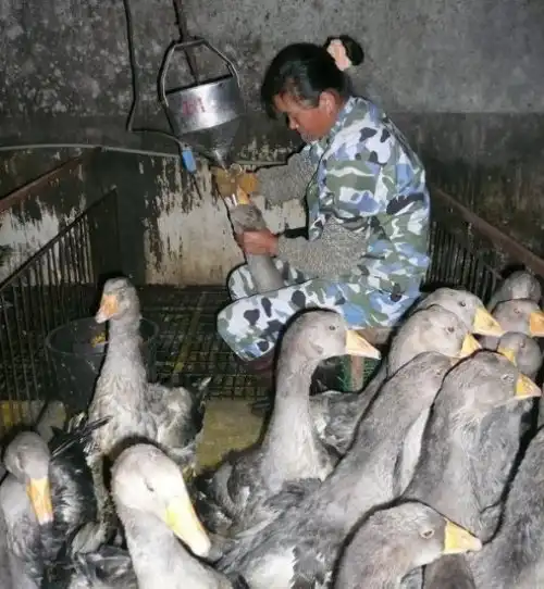 Но этого не достаточно. Поэтому каждой птице вставляют в рот трубку и вливают туда где-то пол-литра еды за раз. В день птица должна съесть не меньше 5 литров калорийной еды. Это равносильно тому, чтобы заставить человека съесть пятилитровую кастрюлю жирной пищи. Печень от такого питания увеличивается и накапливает огромное количество жира. Потом печень отказывает и утка умирает от интоксикации...