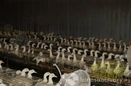 Это ферма по производству уток и гусей Фуа Гра - называют огромную, жирную печень раскормленной птицы. Это блюдо для гурманов и печень непременно должна иметь большой размер и жирность. Вот для этого совершенно варварским способом выращивают птицу. Гусей и уток помещают в клетки, рядом с которыми по желобам около 15 раз в день подают еду. Птица ест целый день и печень начинает увеличиваться.