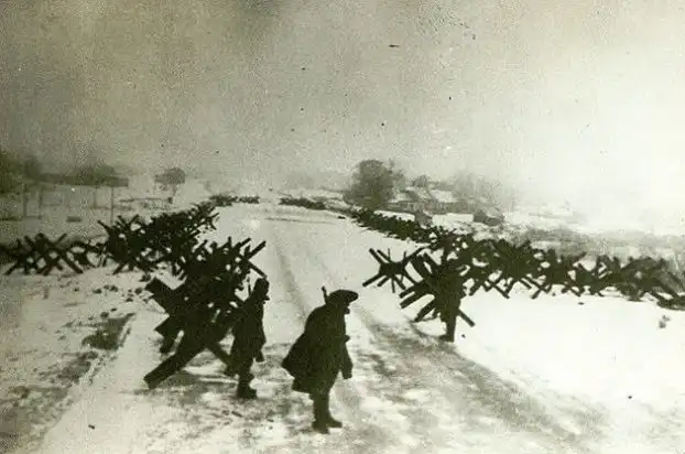 Москвичи на сооружении противотанкового рва на подступах к Москве
