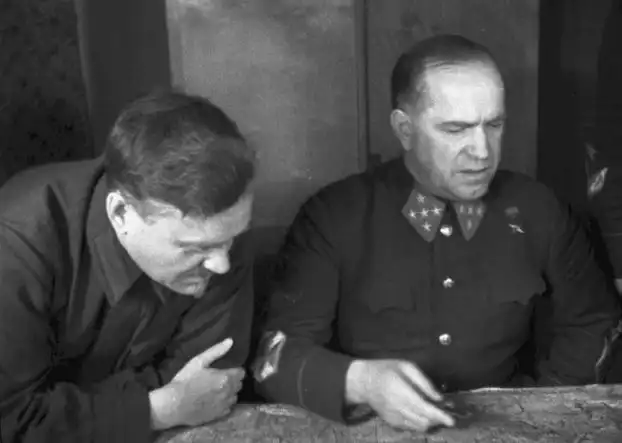 Командующий Западным фронтом генерал армии Жуков Г.К. и член Военного совета Булганин Н.А. в дни обороны Москвы
