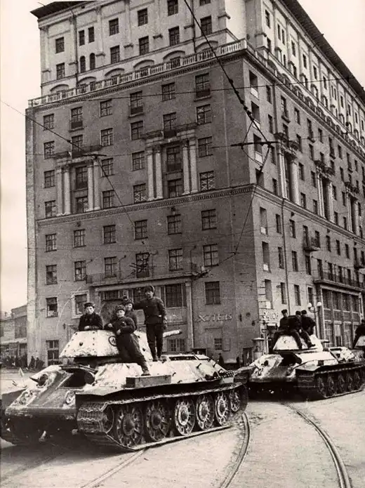 Фронтовые корреспонденты: Симонов К., Зотов И., Кригер Е., Уткин И. – в прифронтовой полосе в дни обороны Москвы