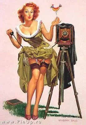 Великая Традиция Pin-Up требует, чтобы "главное" показалось не впрямую, а только намеком. Упавшие трусики, дравшаяся на ветру юбка, свет дверного проема, насквозь пронзивший легкую ткань пеньюара, не открывали того, что есть у каждой девушки.