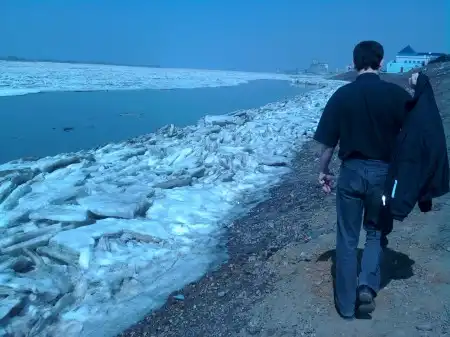 27 апреля, днём, с другом прогулялись по набережной...Река ещё стоит...