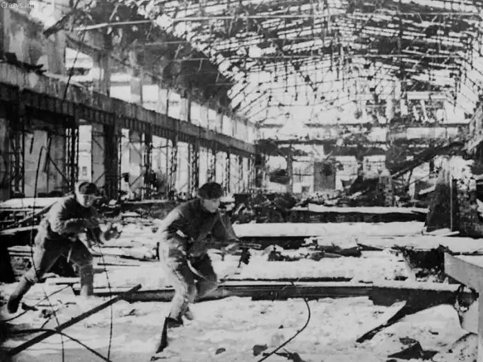 Бой в одном из цехов завода Красный Октябрь. Декабрь 1942 г