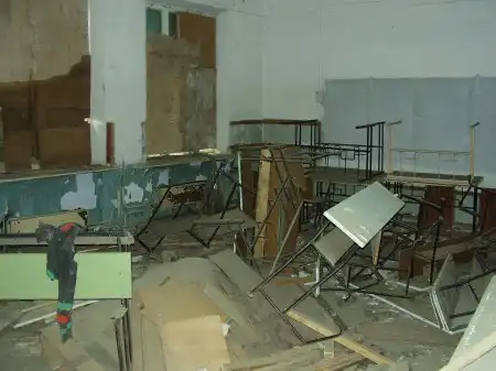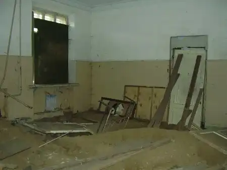 Спортзал, изнутри школы до него добраться невозможно... без инструмента...