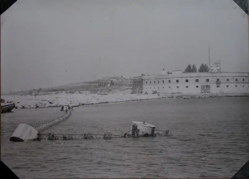 Пройдены боновые ворота. Мола ещё нет. Константиновская батарея- только начинает ремонтироваться.