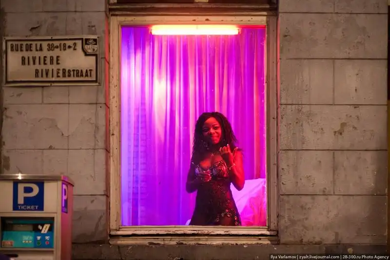 Прямо за небоскребами делового центра Брюсселя расположился местный "квартал красных фонарей". Фонари эти горят в окнах витрин, в которых продают себя девушки. Разгуливать по этим улица страшновато, из-за опасных и злых черных сутенеров. Как вы, наверное, знаете, снимать в таких местах нельзя, поэтому автору пришлось мастерить скрытую камеру...