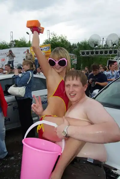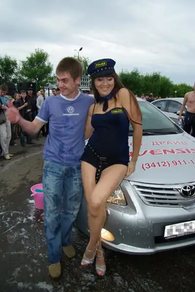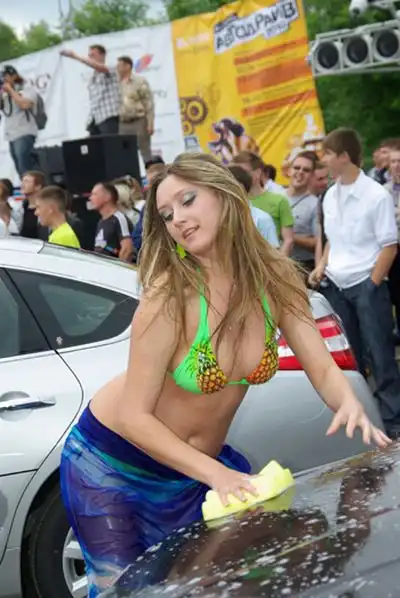 Девушки в бикини развлекали местных жителей, моя автомобили.