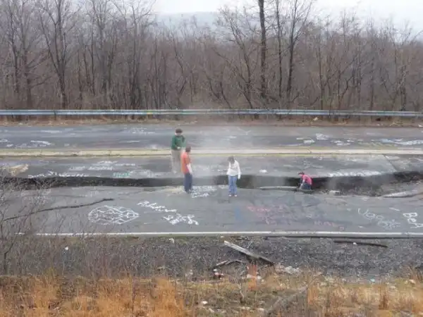 Это Centralia, город-призрак находится в Columbia County, штат Пенсильвания, США.