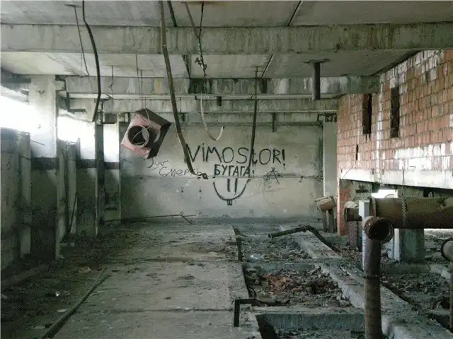 Большой и страшный затопленный подвал в который приблизительно уходит на 4 этажа в глубину. Есть версия, что между корпусами существует затопленный тоннель в котором мог бы проехать грузовик.