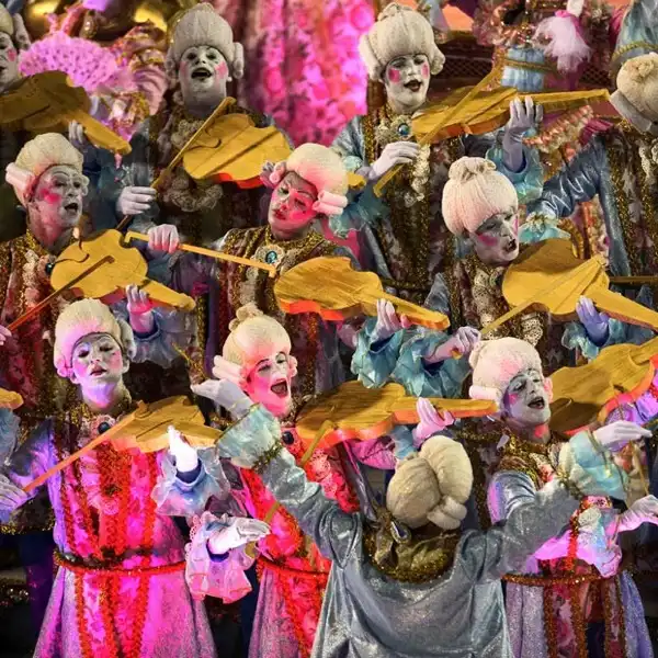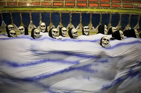 В ходе своей программы танцоры самбы изображали магов-алхимиков, американских гангстеров 1920-х годов, персонажа комиксов про Бэтмена и покойного «короля поп-музыки» Майкла Джексона (Michael Jackson). В танце были также «рассказаны» легенды об Атлантиде, Троянском коне, Александрийской библиотеке, Висячих садах Семирамиды и царе Соломоне.