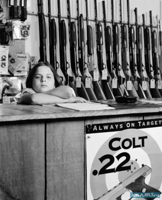 10-летняя Сара Рид в оружейном магазине “Top Brass Sports Inc”: “На прошлое рождество я получила от Санта Клауса дробовик 410 калибра”.