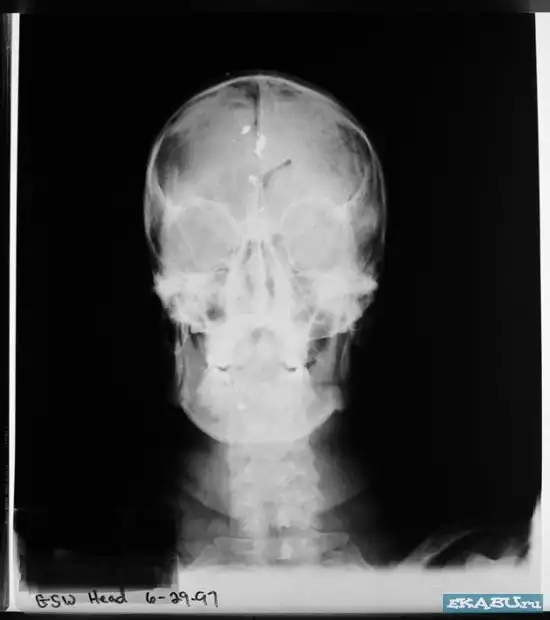 Рентгеновский снимок черепа после самоубийства выстрелом в голову.