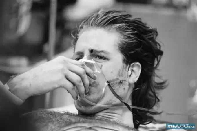 Врачи скорой помощи пытаются остановить кровотечение в результате пулевого ранения в бедро.
