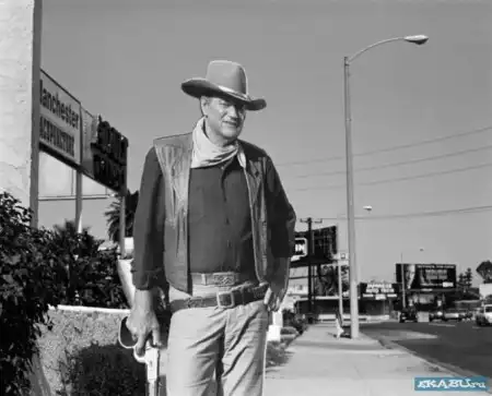 Картонный Джон Уэйн возле оружейного магазина в Лас-Вегасе.
