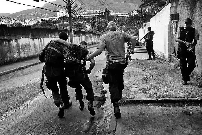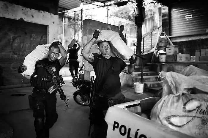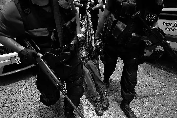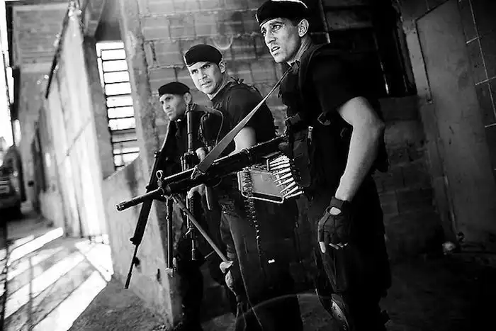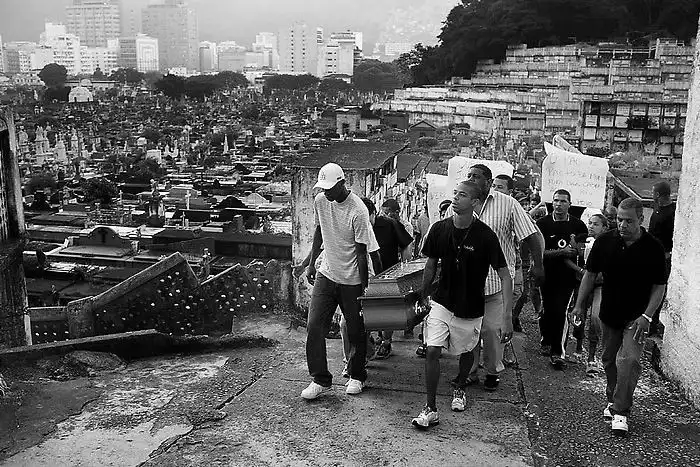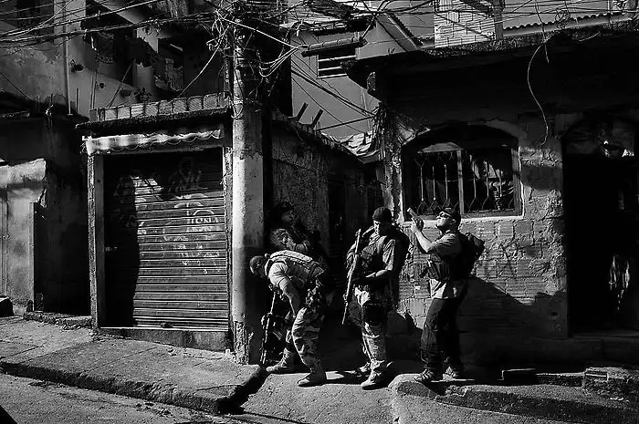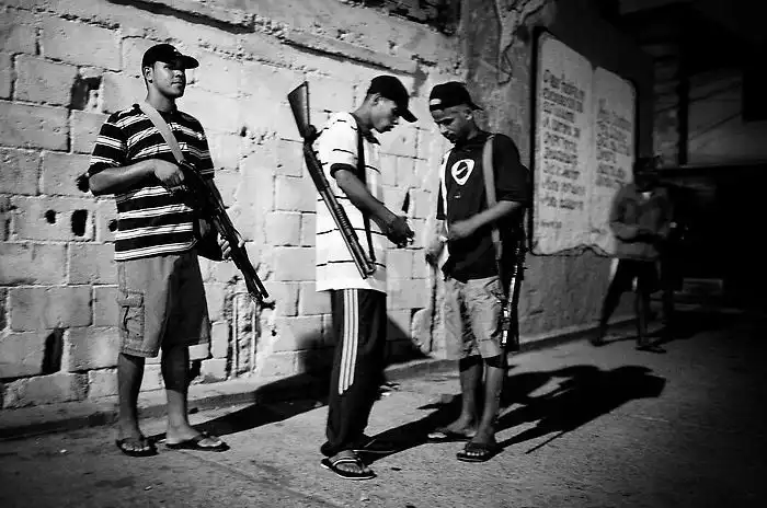 Самым жестоким городом с населением 10 миллионов человек, является Рио-де-Жанейро. Все что касается оружия, наркотиков, разбоев, это туда. Вот к примеру одна банда во главе с Vesguinho (в центре), они контролируют наркотрафик в одной из фавел Рио-де-Жанейро. Они являются частью банды «Terceiro Comando», главной в городе. Вот такие дела.