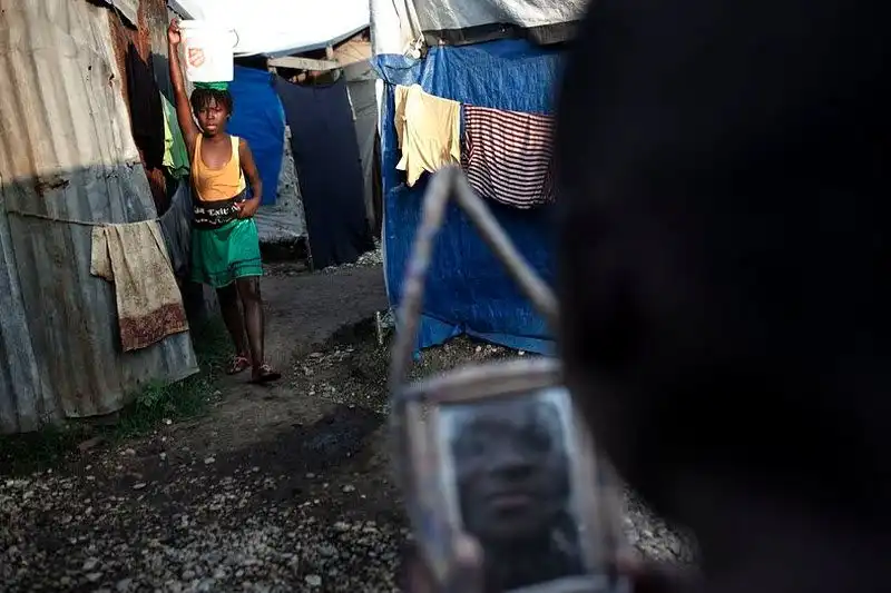 2. У 5-летней Говани Милфортс отец погиб в землетрясении. Теперь она живет в лагере с мамой и бабушкой. Однажды в лагере под предлогом религиозных целей появились 50 мужчин, но как только их впустили, они начали громить палатки и насиловать женщин. (Kobi Wolf/ZUMA)