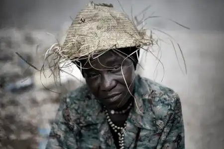 13. Жертва насилия в лагере для беженцев в соломенной шляпе. (Kobi Wolf/ZUMA)