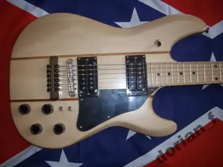 Датчики разработаны и собраны вручную Сергеем Ивановичем Алексеевым. Два датчика на шестиструнке типа Хамбаккер (2-х катушечные).Датчики имеют анизантропные магниты.Для коммутации звукоснимателей используется тумблер на три положения , который включает либо верхний датчик,либо нижний,либо вместе.На каждый звукосниматель используется микротумблер на 3 положения.Тумблер включает катушки параллельно ,либо последовательно или же отключал одну катушку из сети.