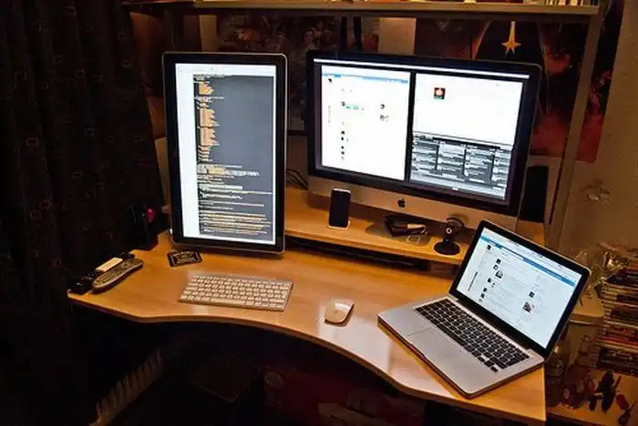 Бывают со старыми мониторами, грязными клавиатурами и заваленные бумагами.